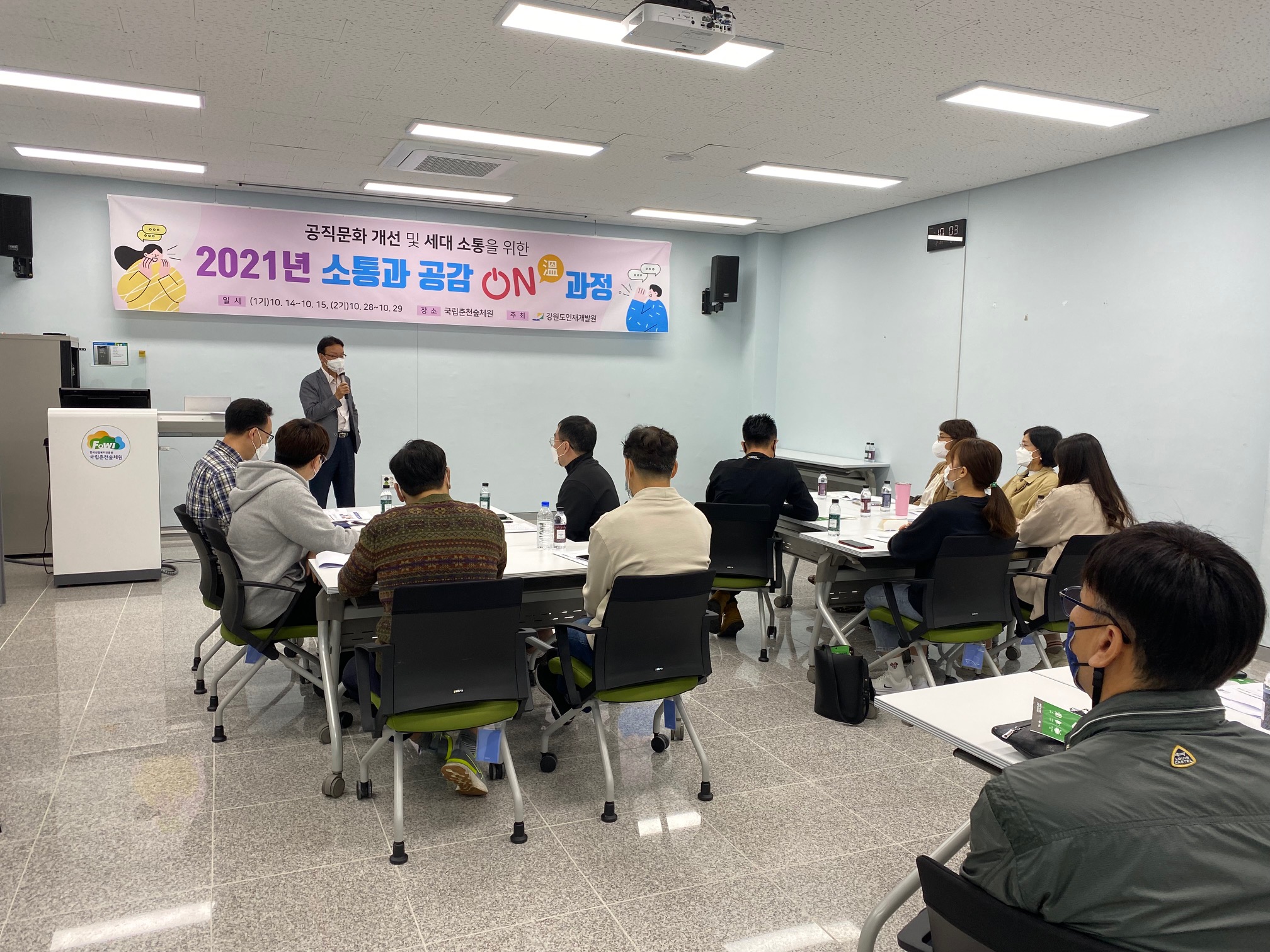 강원도인재개발원(원장 홍경수)은 14~15일 국립춘천숲체원에서 MZ세대와의 적극적인 소통을 위해 이색적인 프로그램을 진행중이라고 밝혔다. 최근 ‘MZ세대(1980년대 초~2000년대 초 출생한 밀레니얼 세대)’가 우리 사회의 주류로 부상하면서 공직사회 내에서도 MZ세대가 대유행이 되고 있다. 강원도인재개발원은 “강원도 공직사회 내 MZ세대라 불리는 2030세대가 35%를 넘어섰으며, 이에 따른 세대 간 소통의 한계가 존재한다”면서 “이제는 공직 사회에도 MZ세대들의 특성을 인지하고 세대 간 이해도를 높여 조직 내 갈등을 줄여나가야 한다”고 말했다. 이번 소통과 공감(溫) 프로그램은 도 및 시군 5급 이하, 특히 2030세대가 주축이 되어 참여하고 공직문화를 바라보는 관점과 생각의 차이를 이해하는 시간을 가졌다. 앞으로 교육환경 여건 변화에 따라 대면·비대면 교육을 탄력적으로 운영하며, 위드 코로나 시대의 트렌드 변화를 반영한 교육과정 및 콘텐츠를 개발해 제공할 계획이다. 홍경수 강원도인재개발원장은 “코로나19로 주변과 대화가 단절된 시기에 소통의 방식과 깊이에 있어 대면 소통은 더욱 중요하다”며 “이번 프로그램이 2030 MZ세대를 배우고 기존 4050 기성세대에 대해 이해함으로써 세대 간 격차를 줄이고 상호 이해하는 따듯한 통로가 되길 바란다.”고 밝혔다. |