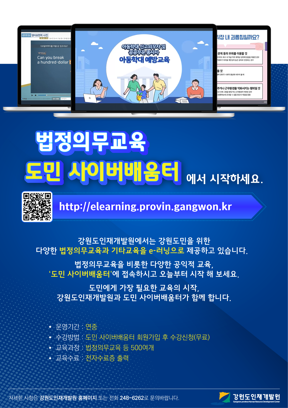 | 제목 | 법정의무교육, 이제 도민 사이버배움터에서 시작하세요. | |||||