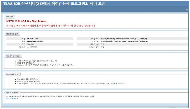 강원도공무원교육원에서 제공하는 도민 e-러닝 서비스를 이용해주셔서 감사드립니다. 2023년도 도민사이버배움터가 2월6일 정상적으로 서비스를 오픈했습니다. 다만, 일부 도민분들이 사이트 접속 시 첨부파일과 같은 오류화면이 나오고 있습니다. 첨부파일과 같은 오류화면이 나오시는 도민분들께서는 사용하시는 브라우저의 쿠키 삭제 후 재접속을 부탁드립니다.