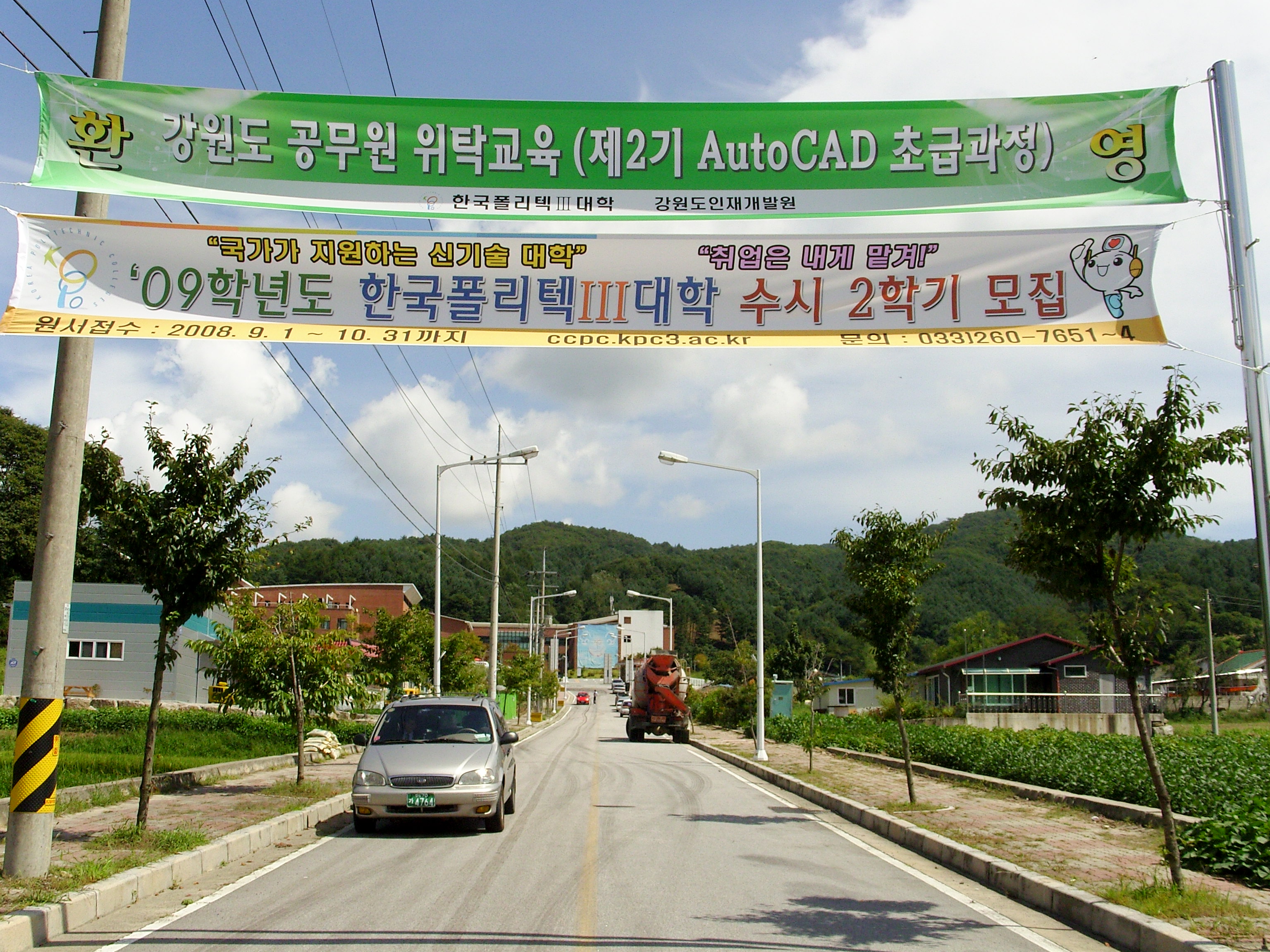 2008년도 제2기 Auto CAD과정 교육이 9. 1 ~  9. 5 까지(1주/비합숙) 도 및 시군 교육생 30명을 대상으로 한국폴리텍Ⅲ대학에서 위탁교육으로 진행되었습니다. 사진은 교육장소와 한국폴리텍Ⅲ대학 정문 입구의 광경입니다 .
