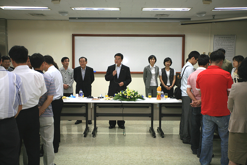2008. 9. 10  19:00 개발원에서 매주(화,수요일) 실시하고 있는 공무원야간어학과정 간담회가 한봉기 행정부지사님, 진연진 개발원장님, 지도교수님과 수강생들이 참석한 가운데 본관 2층 봉사실에서 있었습니다. |