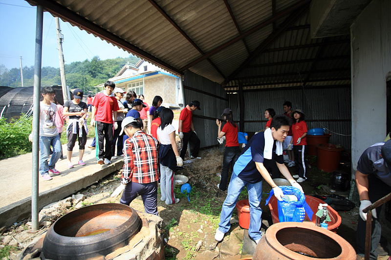 2008. 9. 10 신규임용후보 1기 과정의 봉사활동 모습입니다. 위사진은 춘천시 지내리에 있는 토마토 비닐하우스에서 봉사활동을 하는 모습이며, 아래 사진은 화천 서오지리 마을에서 청소를 하고 있는 모습입니다. |