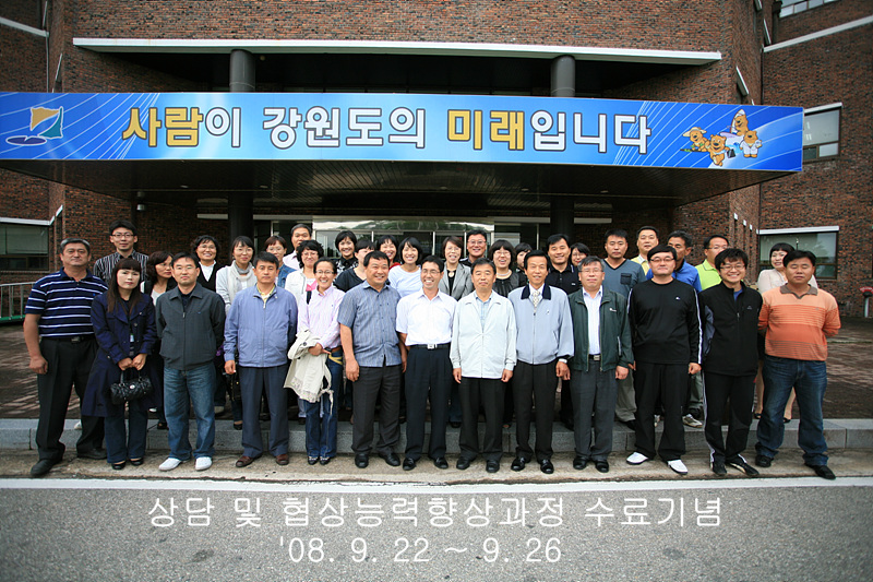 '08. 9. 22 ~  9. 26까지 과정별 수료기념 사진입니다. 위사진은 사이버존에서 있었던 웹디자인과정^^  아래 사진은 상담 및 협상능력향상 과정 기념사진 입니다. |