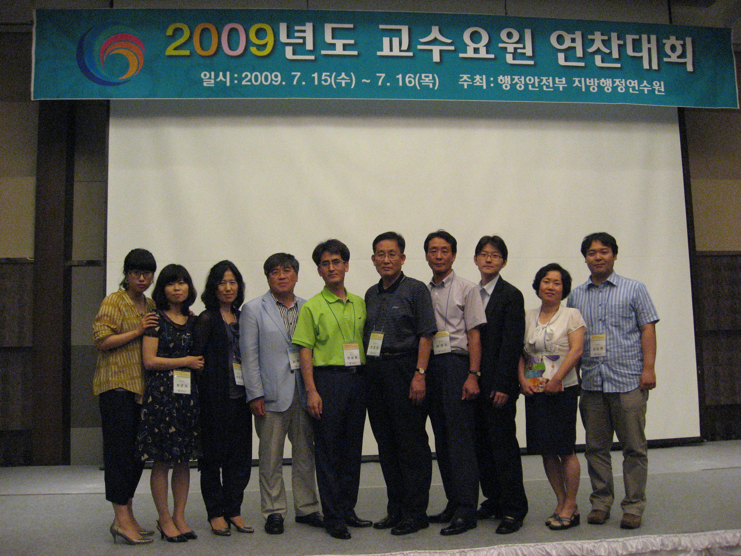 행정안전부 지방행정연수원 주관으로'09.7.14 ~ 7.16 3일간 대전광역시에서 개최된 제27회 교수요원연찬대회에서 인재개발원의 사이버교육담당 이상호계장님이 "환경과 경제를 살리는 녹색성장"이라는 주제로 강의경연분야에 출전하여 영예의 대통령상(강의경연부문 1위)을 수상하였습니다. 강원도인재개발원은 이미 2007년 및 2008년 강의경연분야에서 최우수상을 수상한 바 있으며, 이번 수상은 3년 연속 최우수상을 수상한 것이기에 그 의미가 더 큽니다. |