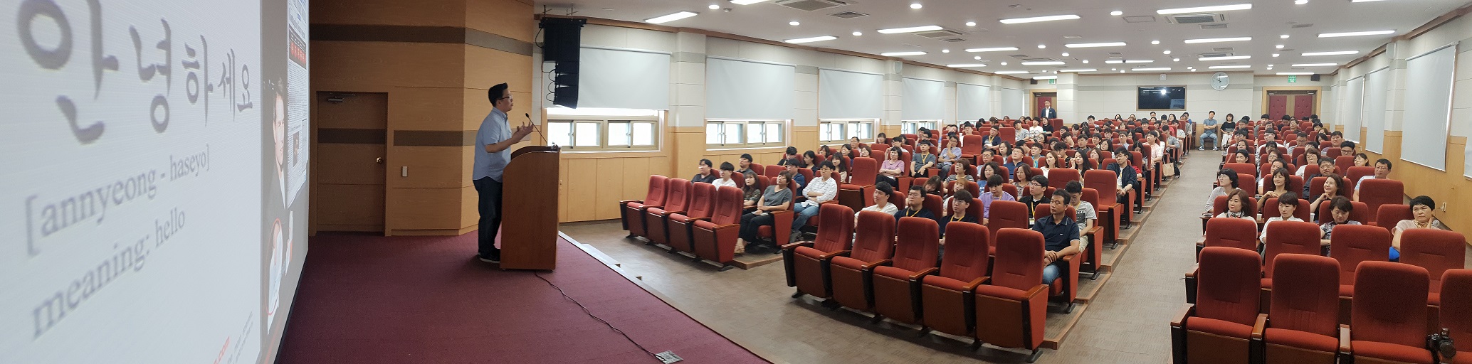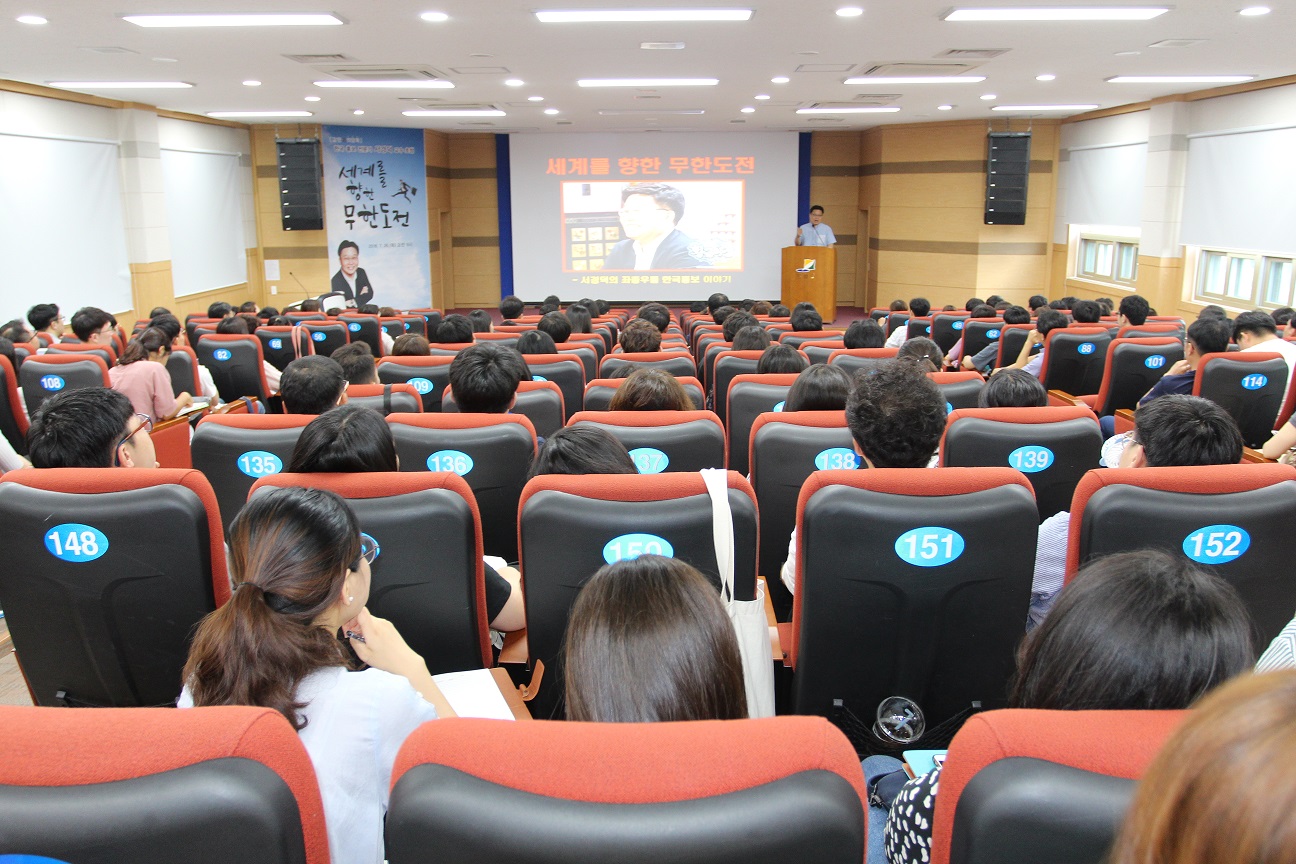2018. 7. 26.(목) 9시 세계를 향한 무한도전의 주제로 특강이 진행되었다. |