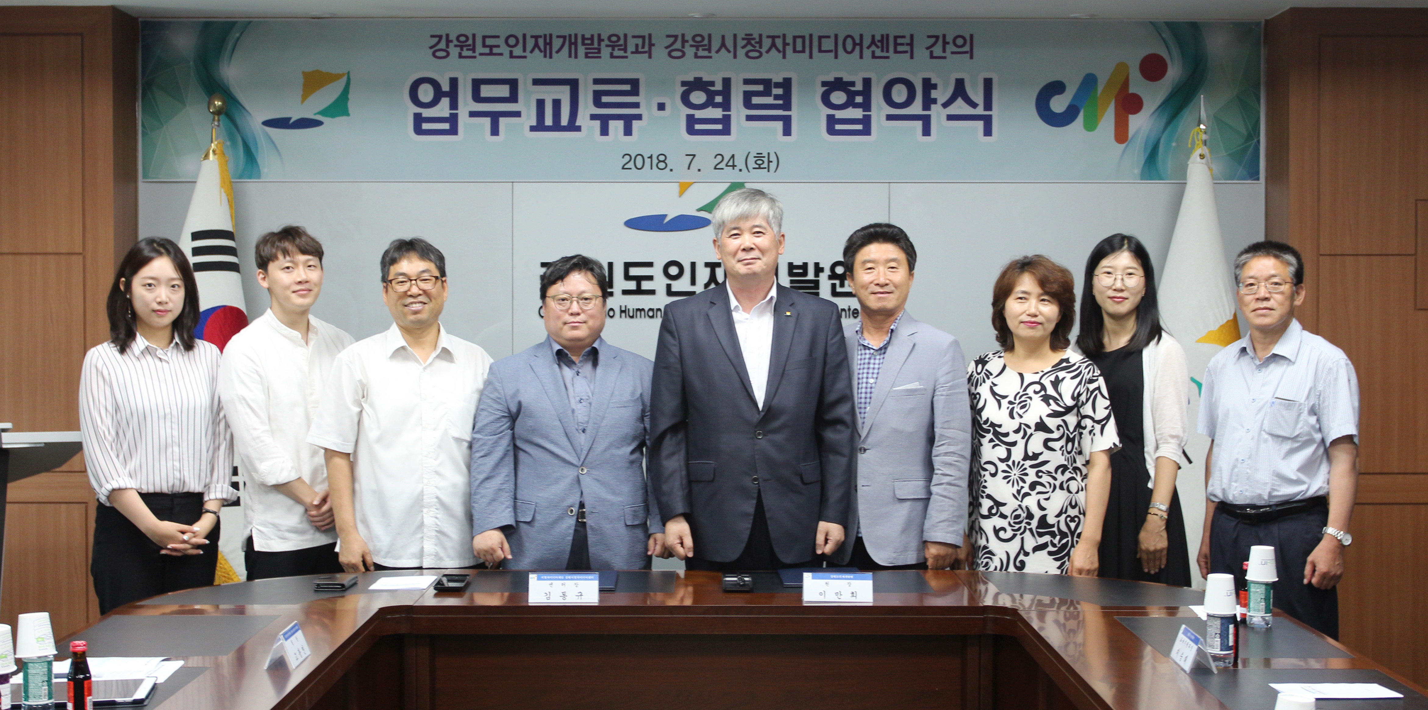 강원도인재개발원(원장 이만희)과 방송통신위원회 강원시청자미디어센터(센터장 김동규)는 7월 24일에 인재개발원에서, 미디어를 활용한 공직자의 소통 활성화를 위해 업무협약을 체결하였다.