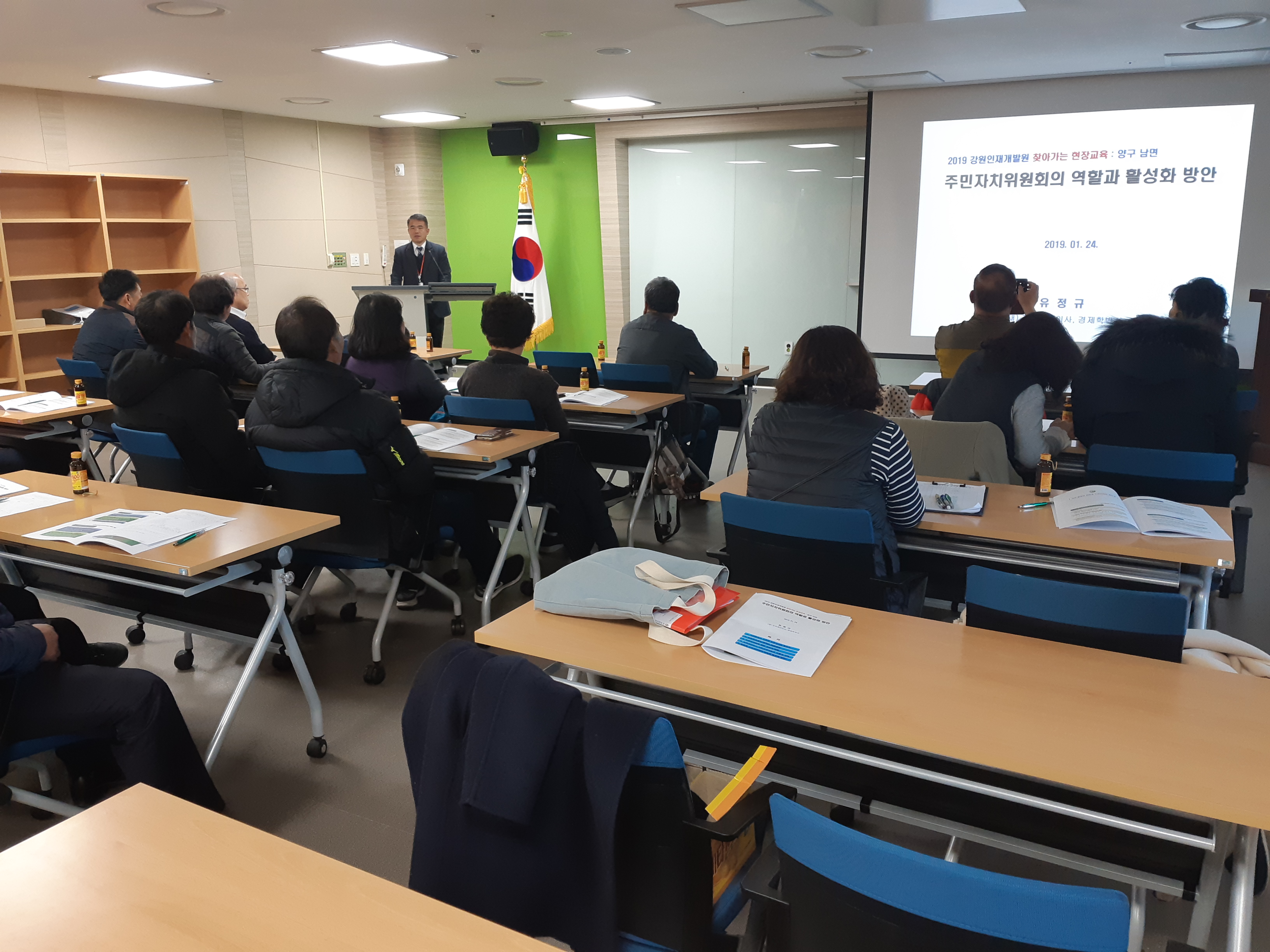 교육일시 : 2019. 1. 24.(목) 10:00 ~ 12:00 교육장소 : 고성 국회의정연수원 교육대상 : 양구군 남면 주민자치위원 교육주제 : 주민자치위원의 역할과 효율적 운영방안
