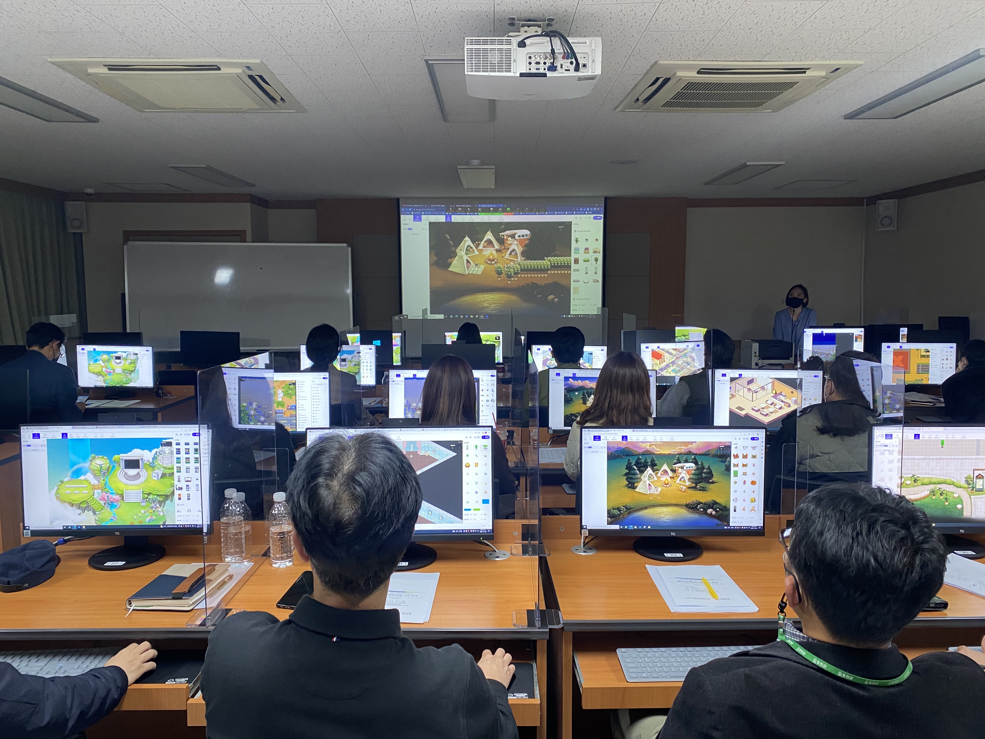 2022년 올해 초, 시군 수탁교육 사업을 수요를 조사하면서 제일 먼저 메타버스 교육에 심혈을 기울였던 곳이 있었습니다. 바로 이곳! 홍천군! 홍천군 교육담당부서의 요구와 우리 교육원의 다양한 역량을 활용하여, 지난 11월 첫날부터 2일씩 두번에 걸쳐 홍천군 "메타크리에이터"과정을 진행하였습니다. 사회적 거리두기가 해제되고, 대면활동이 늘면서 비대면, 메타버스 .. 이젠 옛 이야기 같으시죠? 그동안 기업이나 다른 기관 등에서는 굉장히 활발히 확장되고 있었다는 사실! 그리고 우리나라 버전의 게더타운인 "젭(ZEP)"이 개발되었다는 사실! (이젠, 미국 게더타운 bye~) 더욱 더 좋은건, 무료 플랫폼! 한번에 5만명이나 사용이 가능하다는 것! 홍천군 공무원 대상 "홍천군 관광"을 주제로, - 메타버스 이해와 메타버스 활용사례 - 다양한 메타버스 플랫폼 체험 - 메타버스 플랫폼 "젭(ZEP)" 을 활용해서 직접 맵 제작(팀별 활동 및 우수팀 시상 등) 활동이 이루어졌습니다. 짧은 시간안에 결과물을 도출해내는 신공까지! 우수작이 많았지만, 단 한 팀만 선정해야 하는 어려운 숙제였어요. 교육원에서도 이번 기회를 통해 비대면 플랫폼을 활용한 대면과 비대면의 블렌디드 교육 형태를 적용해보는 의미있는 기회였습니다. 타 시군에서도 저희와 함께 다양한 협력을 진행하길 바라며... 아이디어가 떠오르면 연락주세요! 공무원교육원으로....^^ |