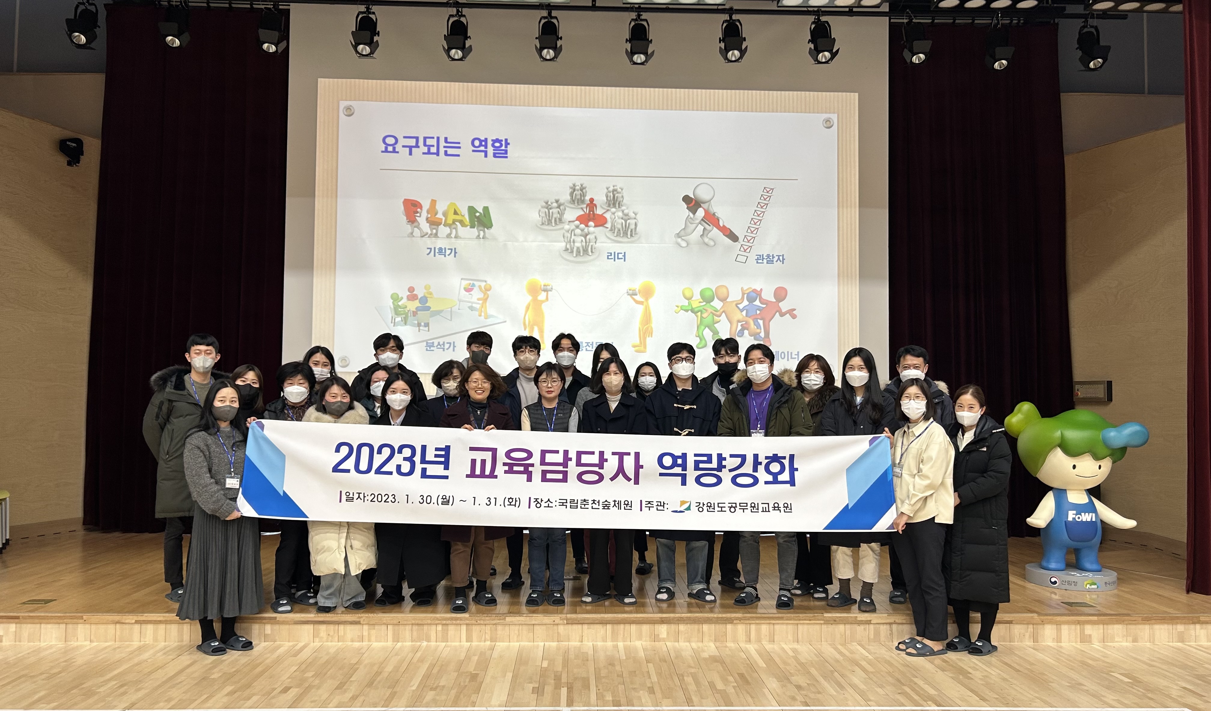 지난 1.30.(월)~31.(화), 2일간 국립춘천숲체원에서 도 및 시군 교육훈련 담당 공무원을 대상으로 교육담당자 역량강화 과정을 운영하였습니다. 교육훈련 설계 및 운영 흐름의 이해를 높이고, 도 및 시군 교육훈련 담당자간 교류를 통하여 교육우수사례를 공유하고, 새로운 교육훈련 방향에 대한 공감대를 형성하는 등 뜻깊고 유익한 시간을 보냈습니다. |