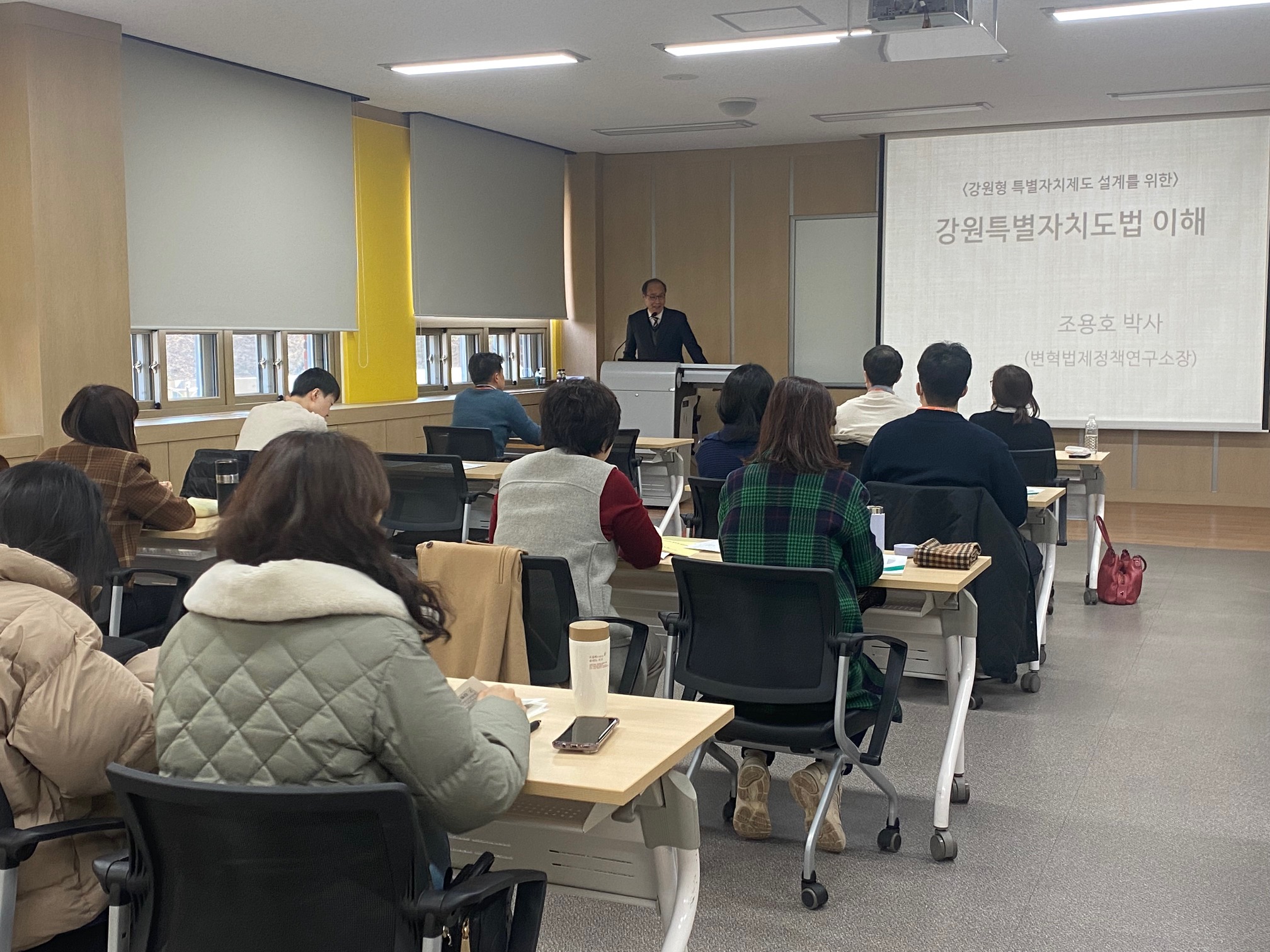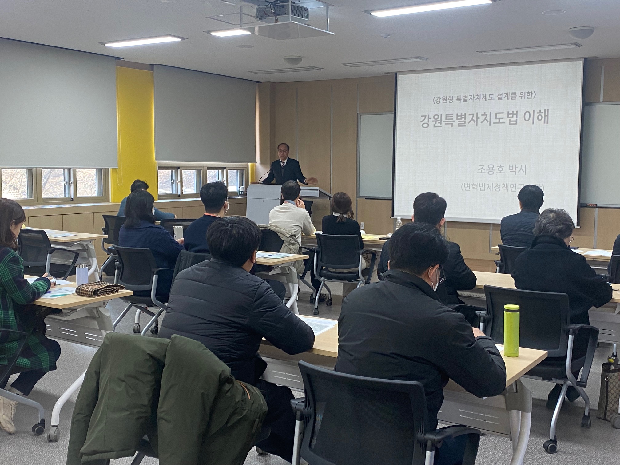 지난 3월 3일, 강원특별자치도 출범 D-100 이던 그 날, 도내 유관기관 관계자 대상으로 "강원특별자치도 이해와 협력과정"을 운영하였습니다. 강원특별자치도 출범이 주는 의미와 현재 추진상황, 특례입법과제 주요 내용과 더불어, 유관기관과의 협력방안은 무엇인지 논의하는 귀한 시간이었습니다. |