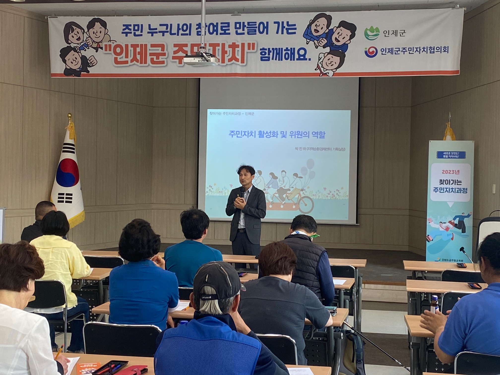 인제군 주민자치위원 대상으로, 제3기 찾아가는 주민자치과정이 6월 7일(수) 인제읍 행정복지센터에서 진행되었습니다. 인제군의 요구사항에 맞추어, 1. 주민자치회 활성화 및 위원의 역할 2. 주민자치회 운영사례 : 경북 의성군 단촌면 주민자치회 ('22 전국주민자치박람회 장려상 수상) 3. 주민자치회 운영사례 : 춘천시 퇴계동 주민자치회 ('22 전국주민자치박람회 대상 수상) 위의 내용으로 진행되었고, 교육이 끝나는 마지막까지 집중하는 모습이 보였습니다! 인제군 주민자치를 응원합니다! |