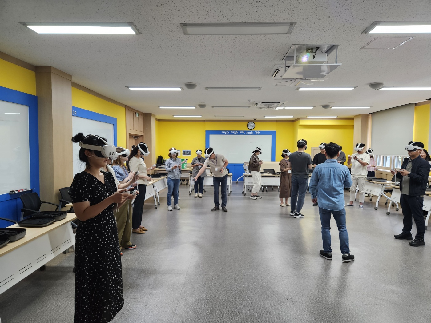 □ 교육일시 : 6. 3.(월) ~ 6. 5.(수) □ 교육장소 : 공무원교육원 제2정보화교육장(2층) □ 교육인원 : 23명 □ 교육내용 : 앱 제작, 메타버스(VR) 체험 및 활용 |